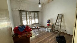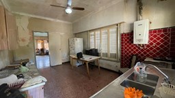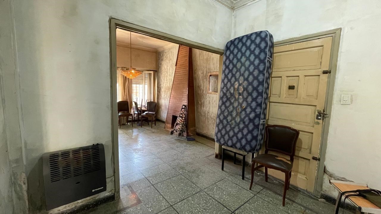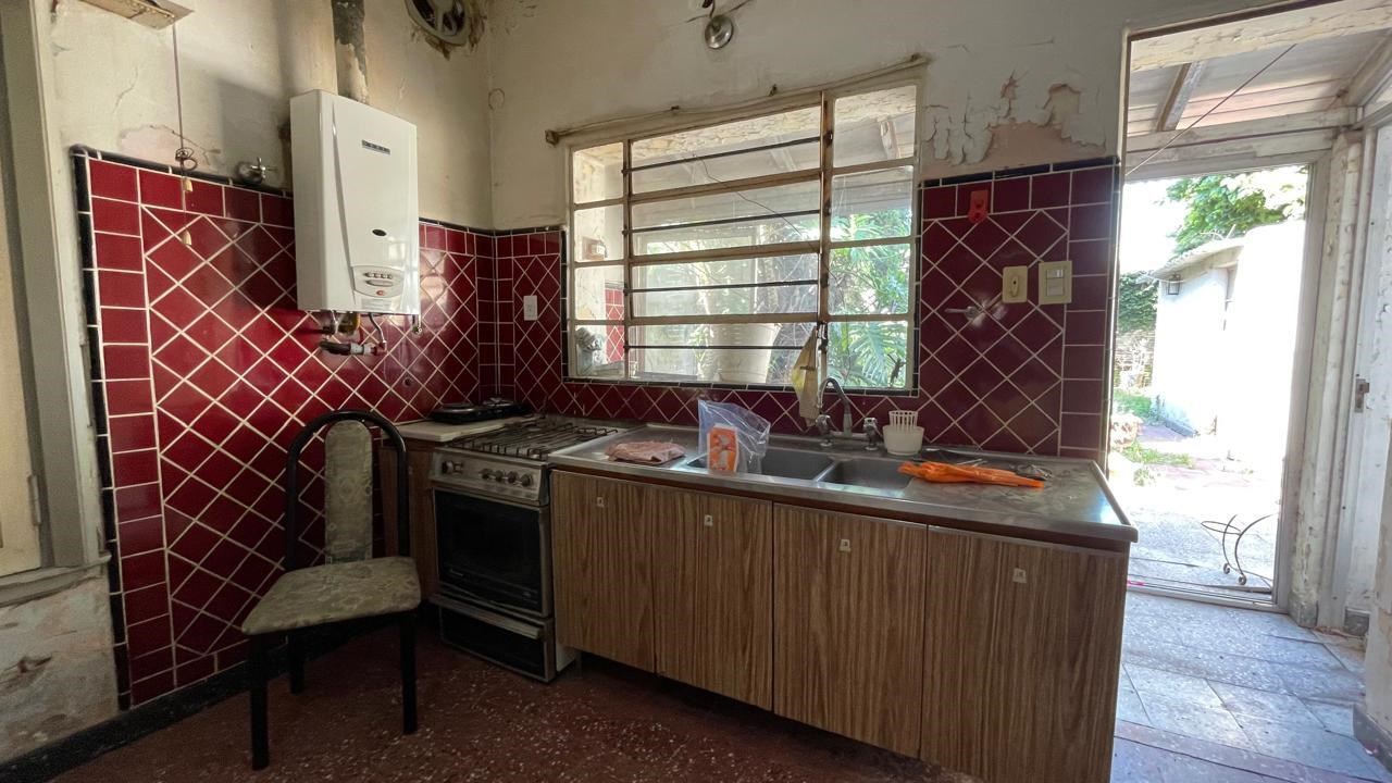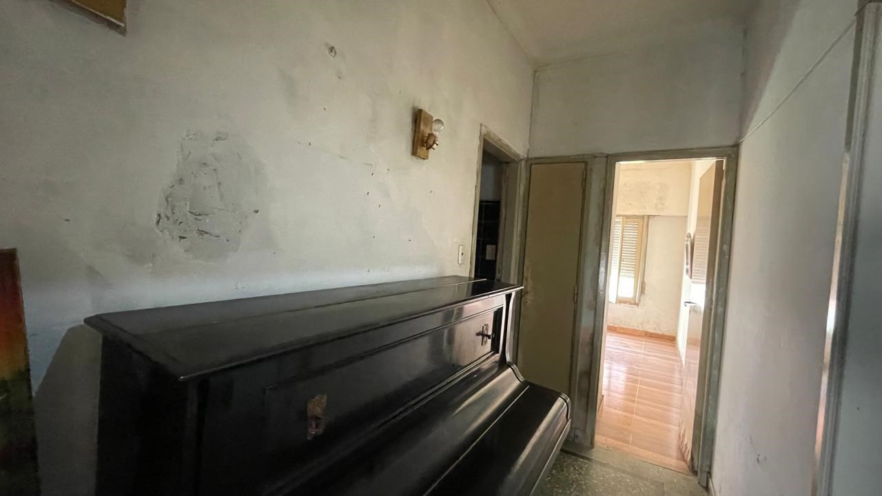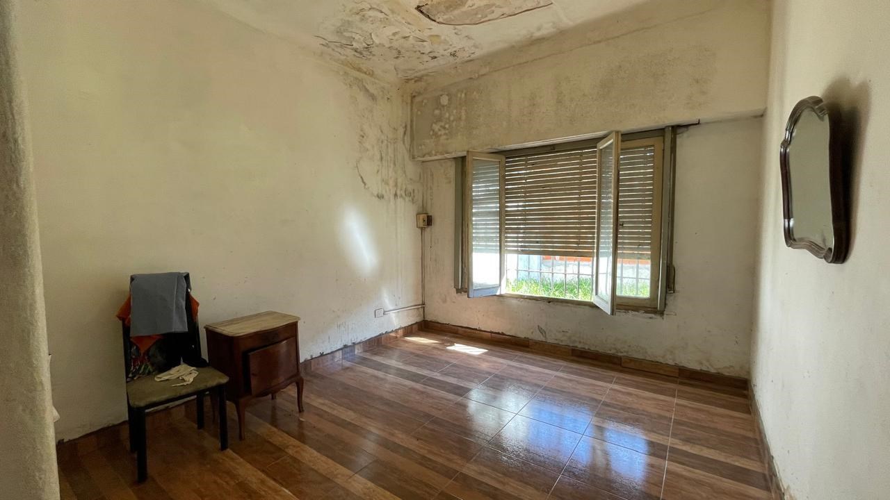 Casa en venta sobre lote de 8.66x33. Jardin al frente (8.66x2); Porch de entrada (3.5x1.3); Ingreso a living (3.3x4.3) con pisos de granito y estufa a gas; Hall distribuidor (2.2x3.2) a la izq con salida a pasillo lateral y a la derecha acceso a sector privado a distribuidor (1.4x2.5) con pequeño placard; 1) Dormitorio al frente (3.3x3.7) con pisos ceramicos y placard; 2 do dormitorio al contra frente (3.3x3.7) con pisos ceramicos y placard, ventana al patio; Baño (1.8x2.5) con azulejos y bañadera; Cocina (5.6x3.5) con amoblamiento, ventana y puerta con acceso a patio; Patio (1.20x5) + (3.3x6.8); Galpon (2.5x3.3); Fondo libre. La propiedad requiere refacciones.