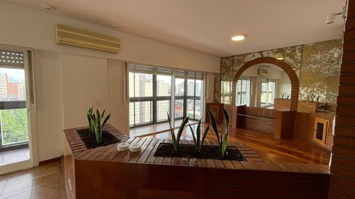 Alquiler departamento de 4 ambientes con cochera cubierta (en subsuelo) y Baulera = LIVING COMEDOR CON VENTANALES AL FRENTE, A/A FRIO CALOR = ...